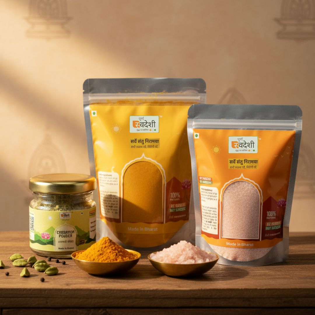 At Poorn Swadeshi, we believe health and purity are gifts passed down from our ancestors. Our mission is simple, to bring back the wisdom of Ayurveda and the timeless traditions of India into every home.